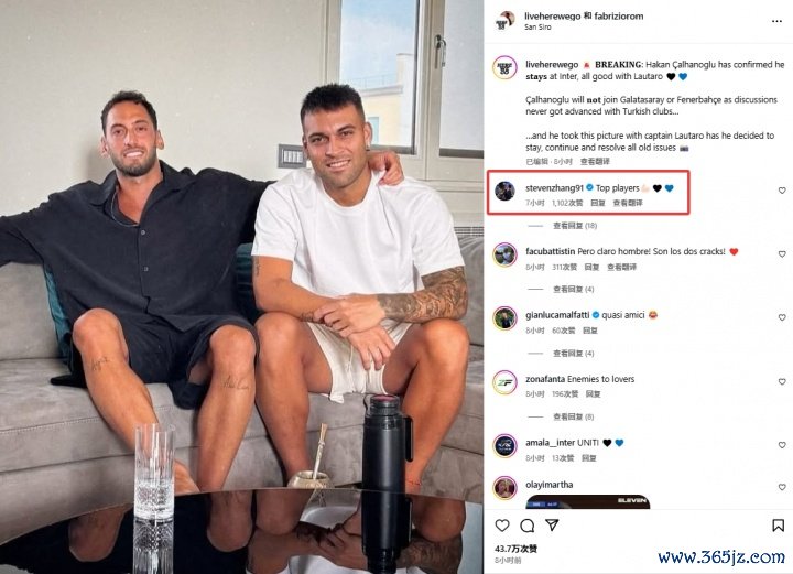 在罗马诺报谈两东谈主和好的帖子下,前国米主席张康阳商量:顶级球员们。