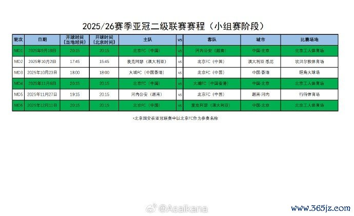 亚足联官网本日早些本事上传的亚冠二级联赛赛程更新是不正确的,北京国安的赛程本色并未有变化(更新仅为其他小组标黄部天职容),第一场仍为主场对河内公安的比赛,臆想是亚足联责任造作误传了罪戾版块。赛程以中国足协8月25日在官网发布的版块为准。
