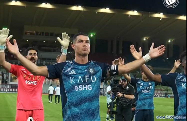 赛后庆祝时,C罗与队友扮演了维京战吼。