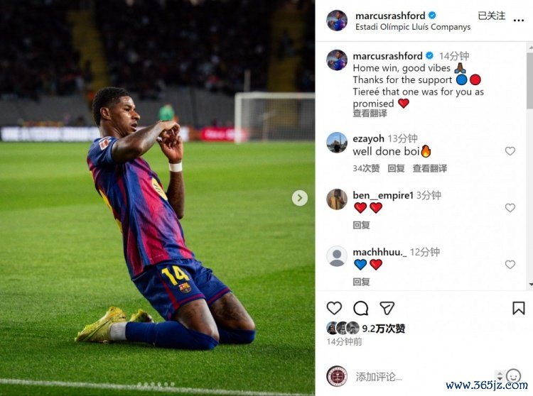 拉什福德社媒晒照庆祝奏效,配文:“主场奏效,讨厌绝佳。感谢全球的撑捏,蒂埃雷,正如我所应承,这粒进球献给你。”