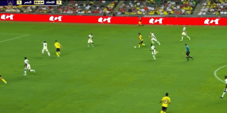 第16分钟,迪亚比倒三角回传,贝尔温破门将比分扳平,吉达王人集1-1