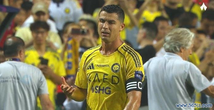 关于主裁此次判罚,利雅得顺利队长C罗至极不悦,他不休摊手抗议,却遭主裁无视,神采闹心得快哭了。