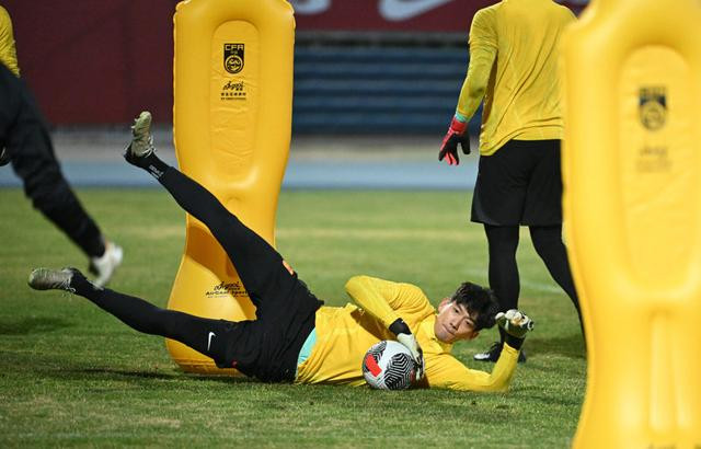 2024年3月23日,中国队守门员颜骏凌在练习 中。当日,中国国家男子古代足球 队在天津奥林匹克中心运动场 练习 场地进行练习 。中国队将于3月26日在2026年世界杯赛 预选赛36强赛中主场作战 迎战新加坡队。新华社记者孙凡越摄