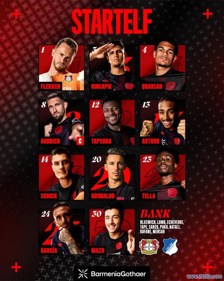 直播吧8月23日讯 北京期间今天晚上21点30分,勒沃库森将在德甲首轮比赛中主场对阵霍芬海姆,两队公布了此役的首发声威。