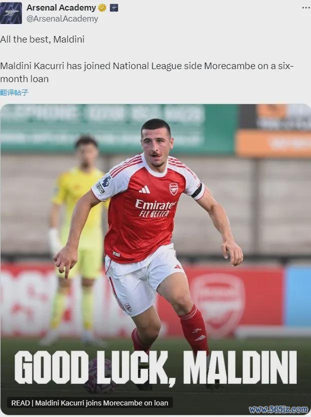 官方:阿森纳告示马尔蒂尼-卡库里租赁加盟英格兰天下联赛的莫克姆俱乐部直到2026年1月。