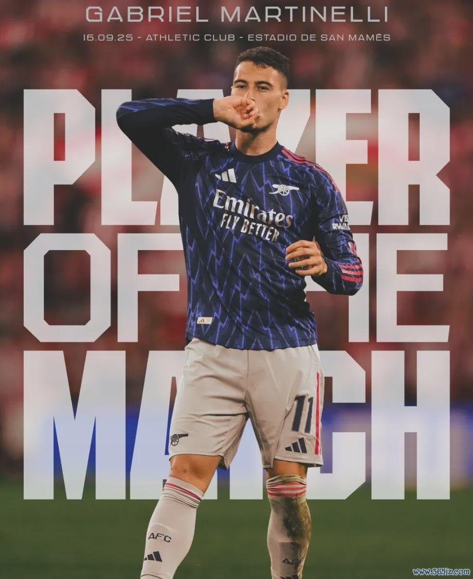 马丁内利被阿森纳官方和欧冠官方评为了本场比赛最好球员。