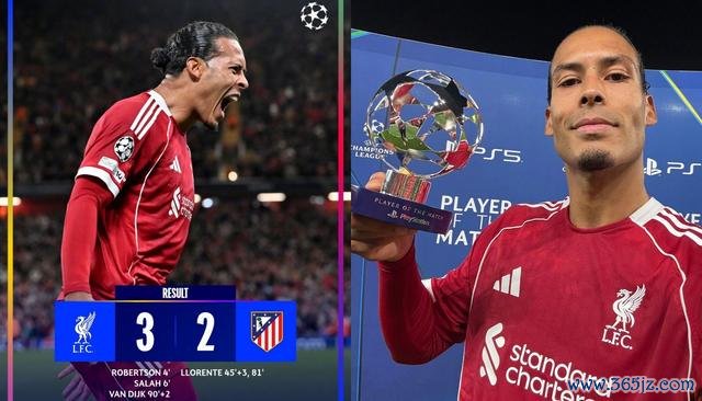 下半场补时第2分钟,索博斯洛伊开出角球,范戴克跃脱手球破门,利物浦3-2绝杀!