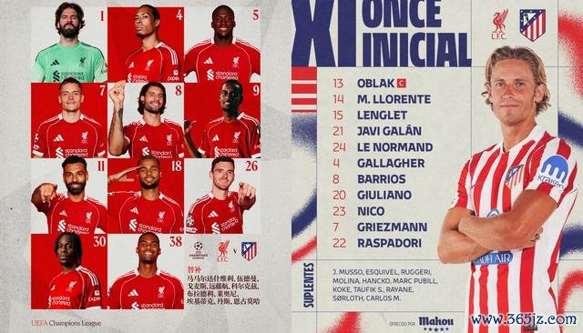 北京时候9月18日3点,安菲尔德球场灯火通后,25-26赛季欧冠联赛阶段第1轮演出焦点对决,英超权门利物浦主场迎战西甲劲旅马德里竞技。