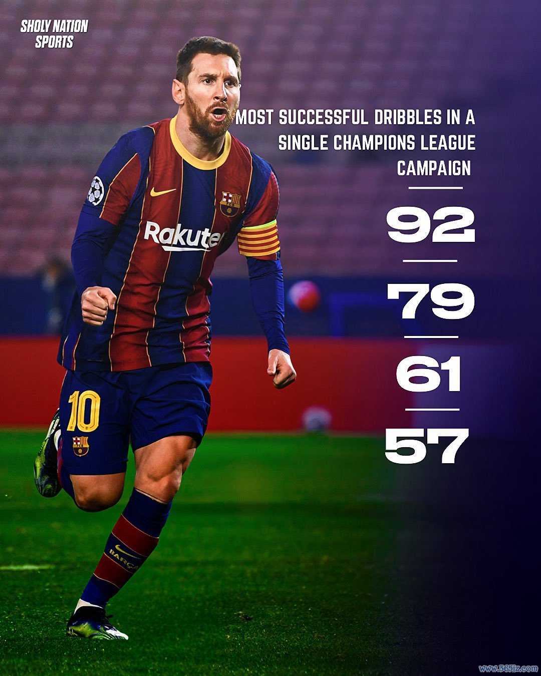 有媒体SNS也统计并公布了欧冠单赛季告捷盘带次数最多的球员,其中梅西是历史第一、第二、第三、第四!梅西有五次欧冠单赛季过东说念主第一,有四次在前四,包揽欧冠历史前四,况兼第一是唯一档,有92次。第二有79次,第三有61次,第四有57次,都是梅西的宏构。