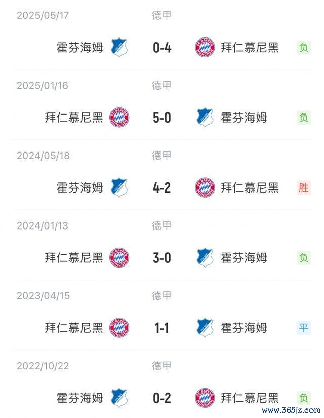 拜仁德甲3连胜积9分位列榜首;霍芬海姆2胜1负暂列德甲第6。