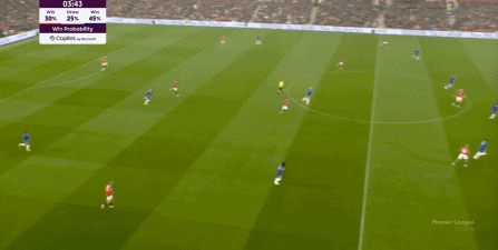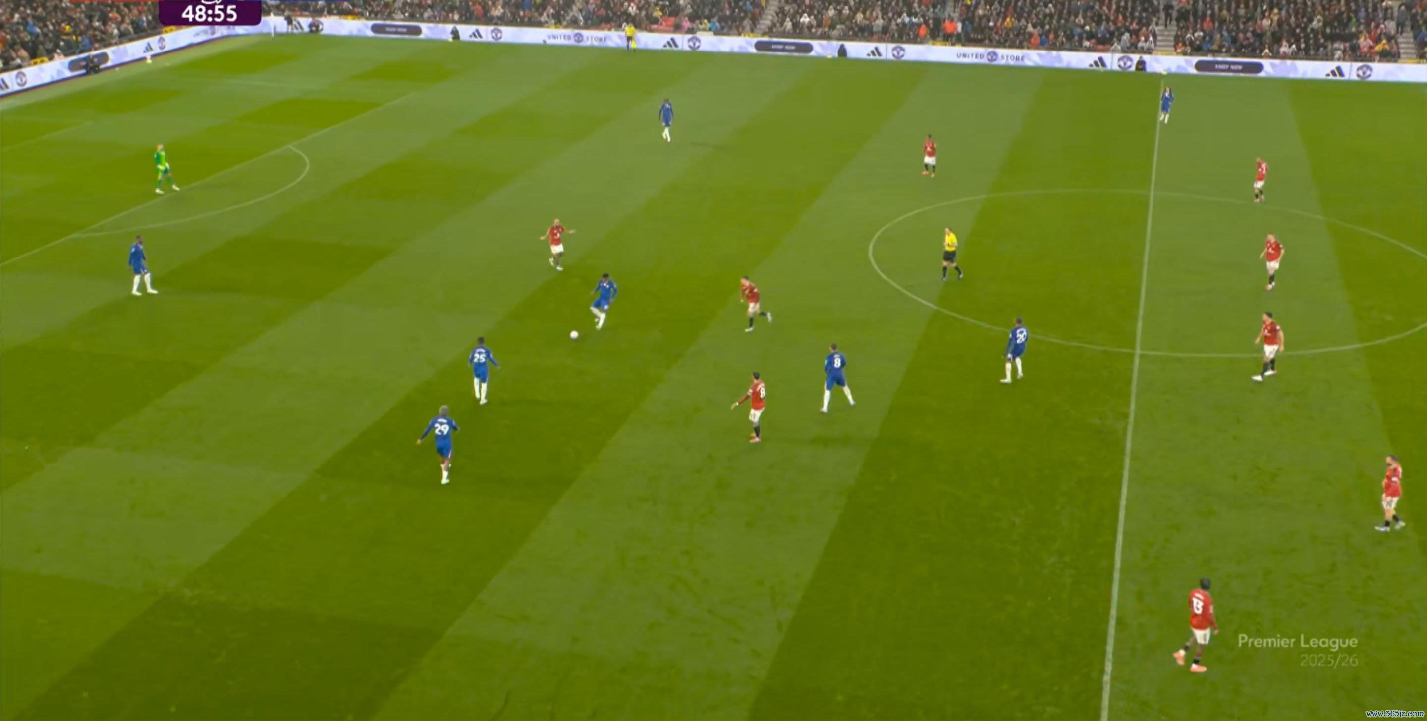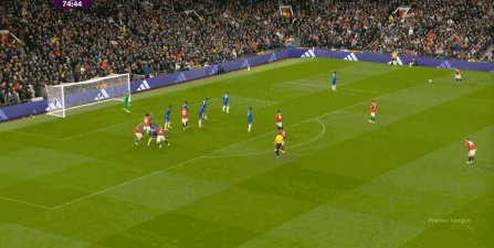 但在第80分钟,曼联的轮转再次出现不足,切尔西从右肋制造了定位球契机,借此扳回了一球: