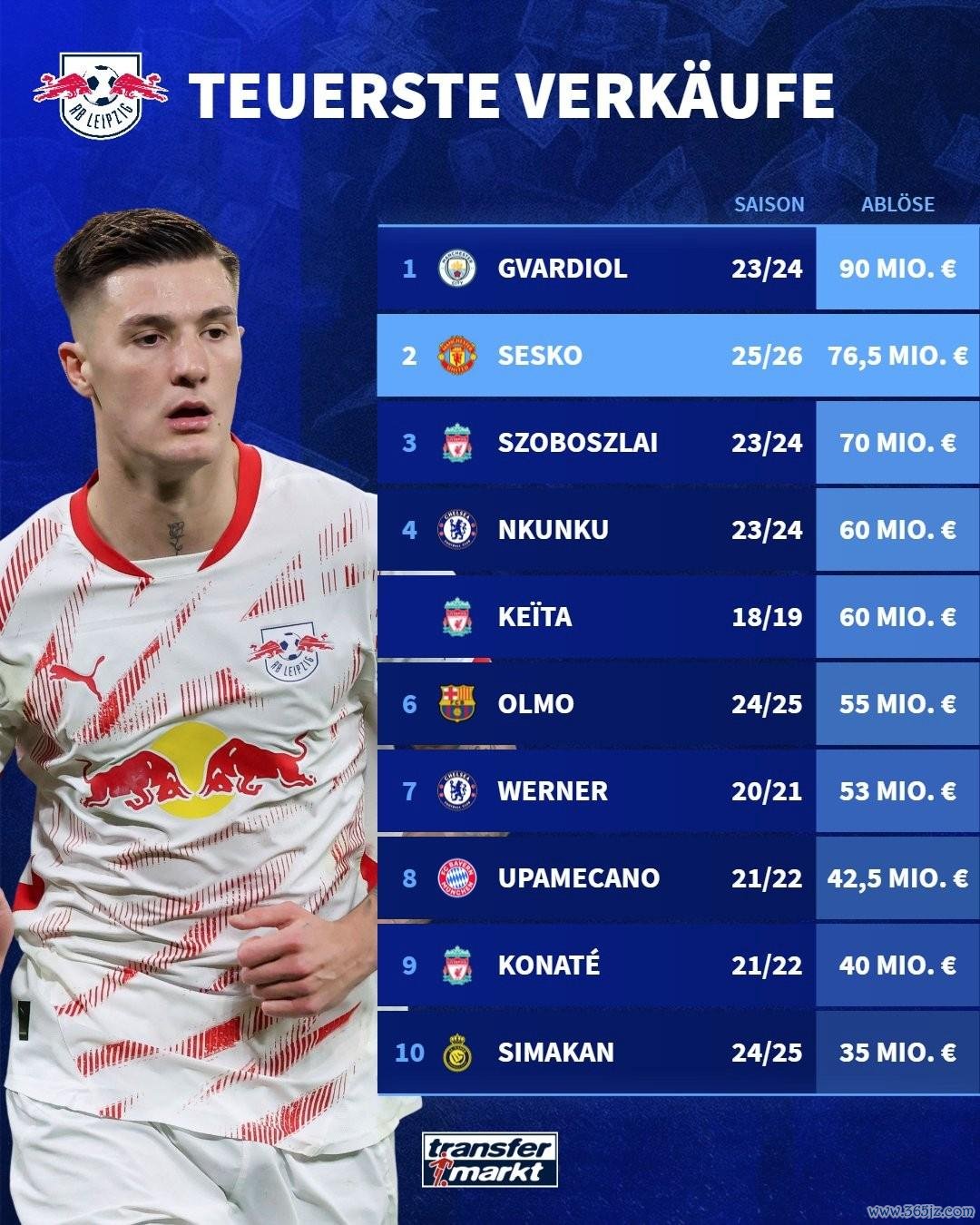 凭证统计,在莱比锡队史出售价钱最高的球员中,前五名皆是转会到了英超俱乐部,分裂是格瓦迪奥尔、谢什科、索博斯洛伊、恩昆库、纳比-凯塔。