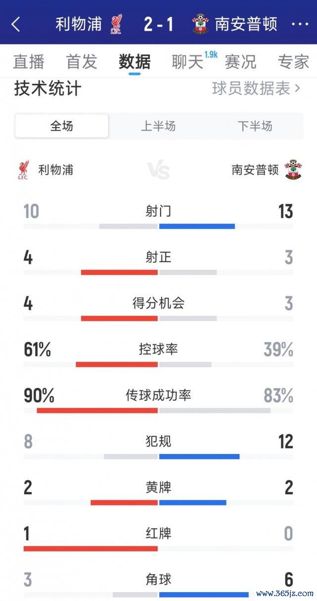 直播吧9月24日讯 在本轮联赛杯,利物浦2-1打败南安普顿。以下为两边本场数据对比: