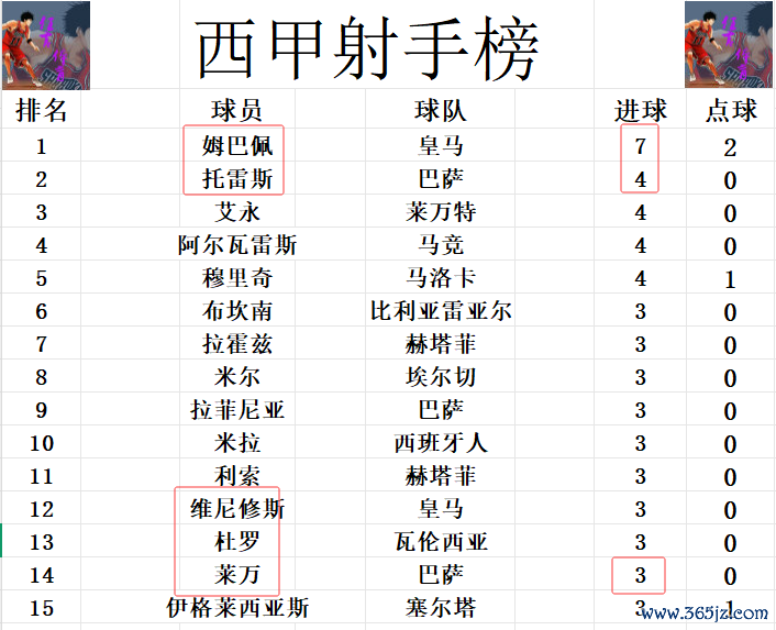 弓手榜方面,姆巴佩6轮7球高居榜首,托雷斯今天无力进球,还是和艾永,阿尔瓦雷斯,穆里奇4球并排第2。莱万替补登场破门,追上拉菲尼亚,维尼修斯,米尔等东说念主3球刚好拥入前十。
