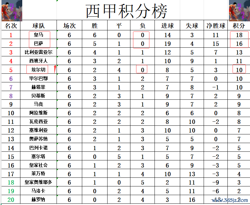积分榜方面,6轮一起战罢,还是唯有皇马保执全胜,巴萨今天逆转赢球后5胜1平保执不败,他们再次将和皇马的差距削弱到只差2分,持续坐稳第2的位置。除了皇马和巴萨除外,还有一支不败的球队,那等于升班马埃尔切,只不外他们平局有点多,2胜4平,净胜球上风越过毕尔巴鄂竞技和赫塔菲升至第10。