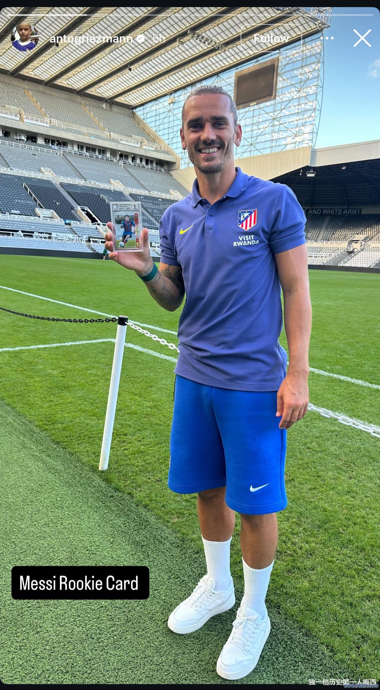 比如格列兹曼,他在一个跟梅西无关的节点请安梅西。在马竞打败纽卡斯尔的赛后,格列兹曼发动态,晒出我方在圣詹姆公园球场的相片,他的手里还拿着梅西球星卡。格列兹曼除了发我方跟梅西球星卡的合拍外,还挑升给梅西球星卡一个特写镜头。这是在评释我方严防梅西,而况有这张贵重的梅西球星卡。