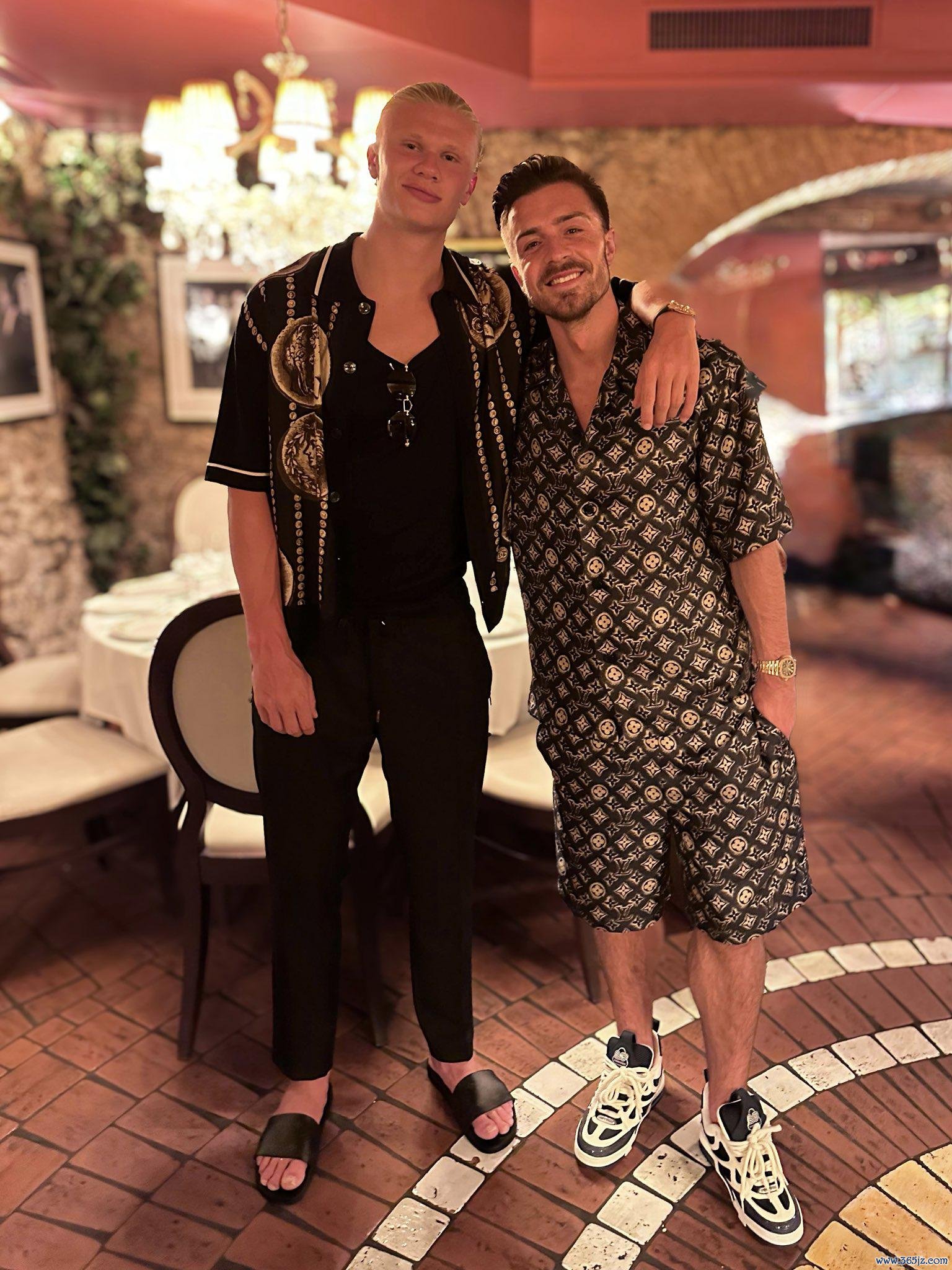 雷速体育8月12日讯 在格拉利什行将离队之际,曼城先锋哈兰德在社媒发布了多张与其合照,告别这位队内好友。