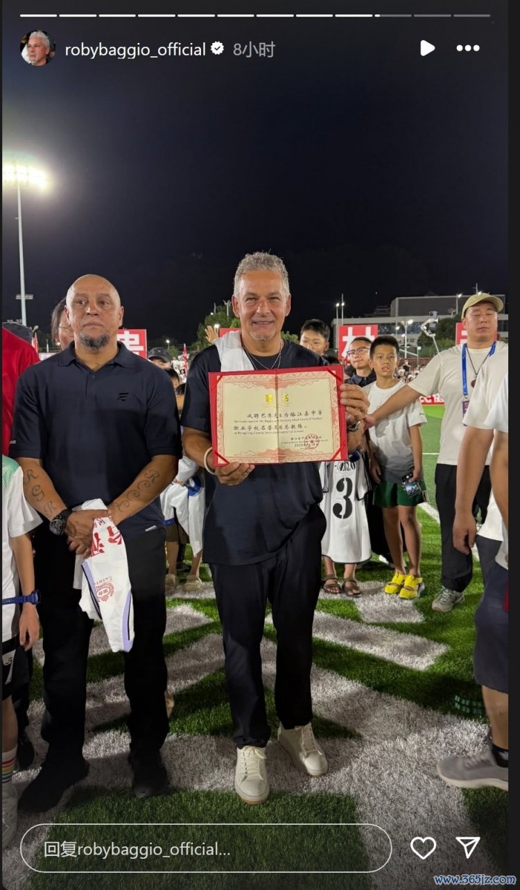 7月27日讯 巴乔更新社媒动态,晒出与罗伯特-卡洛斯出席村超举止的像片。