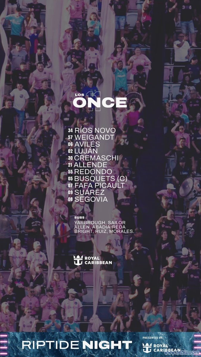 迈阿密外洋公布了此役的首发名单,苏亚雷斯、布斯克茨在列,梅西、阿尔巴停赛缺席。