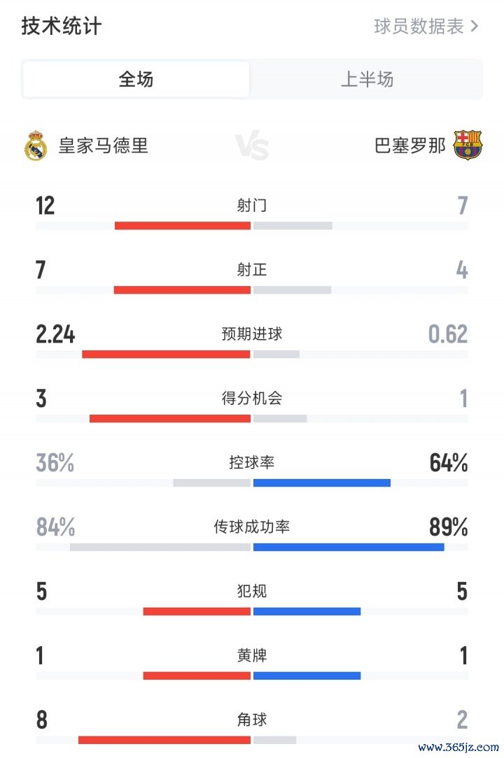 10月27日讯 国度德比半场,皇马2-1高出巴萨!两边各孝敬了精彩的半场,以下是半场数据: