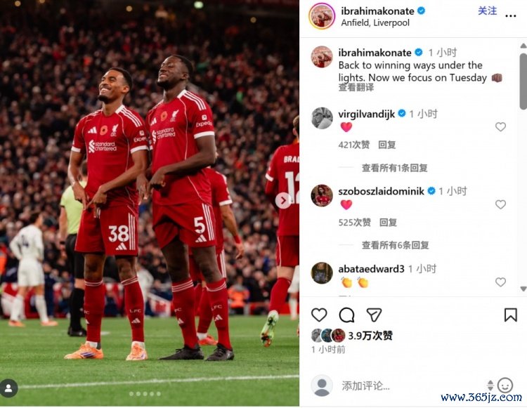 利物浦后卫科纳特赛后也在社媒晒出与进球元勋赫拉芬贝赫的合照,配文写说念:“在聚光灯下重新回到到手轨说念,当前专注于周中的欧冠。”