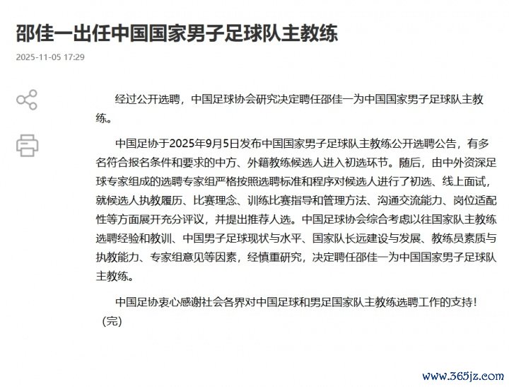 中国足协忠心感谢社会各界对中国足球和男足国度队主教练选聘使命的援助!(完)