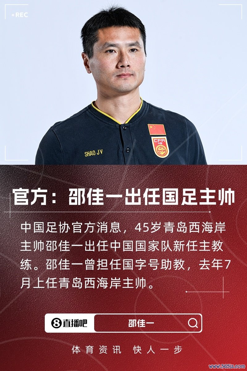 11月05日讯 中国足协官方音问,45岁青岛西海岸主帅邵佳一出任中国国度队新任主帅。