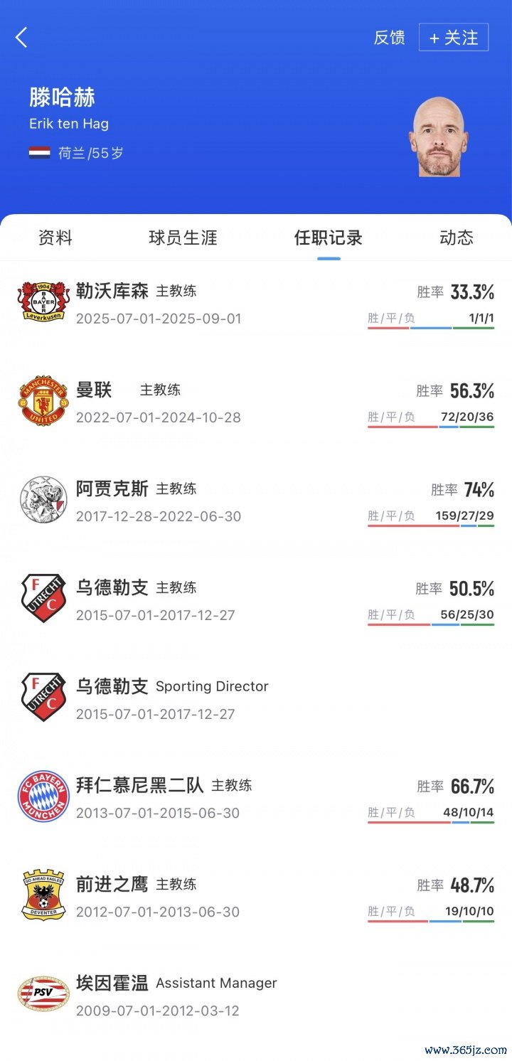 滕哈赫夏窗成为了勒沃库森的主帅,但只是带队2轮德甲,他就被药厂“光速”撤职。