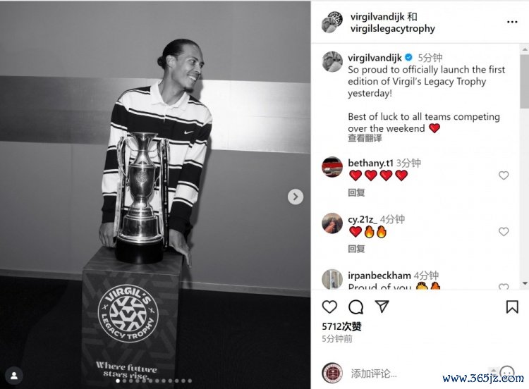 范迪克推出以我方名字定名的杯赛,为U13球员提供竞技的舞台,他在酬酢媒体上晒出我方与奖杯的合照,配文:“很自重昨天慎重运转首届维吉尔传承杯赛事!祝通盘周末参赛的球队好运。”