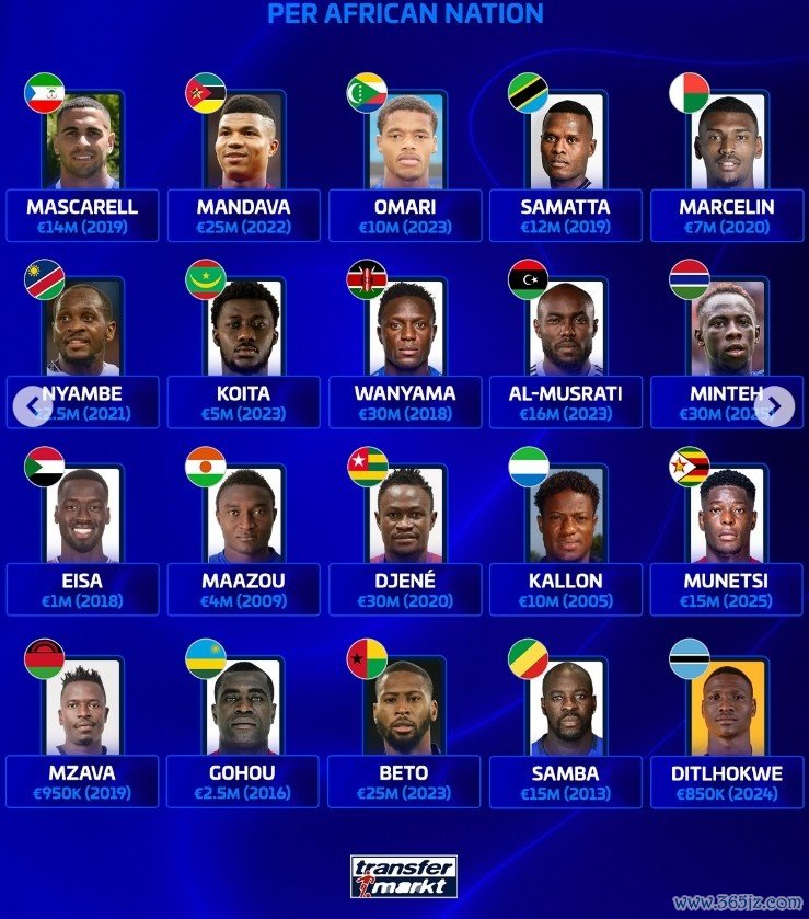 姆伯莫(喀麦隆,2025年):5500万欧元