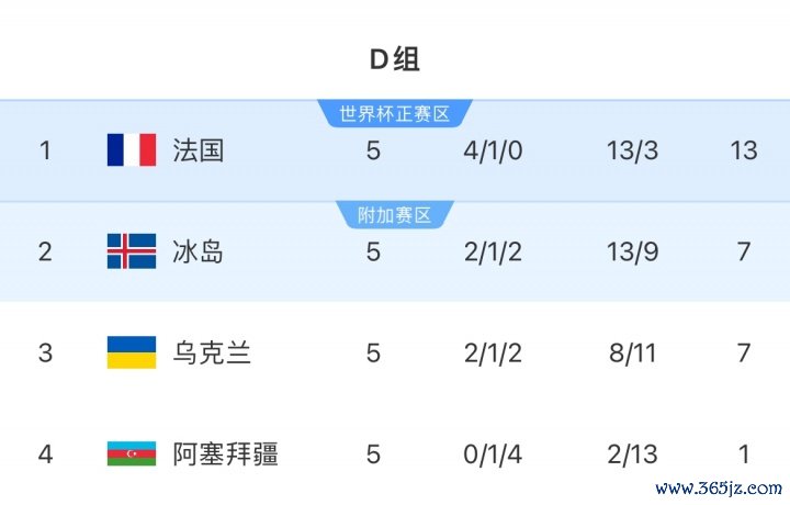 11月14日讯 世初赛欧洲区小组赛D组第5轮死心,法国大捷锁定小组头名,提前一轮锁定2026全国杯!