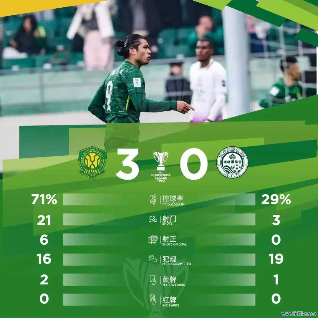 最终,在2025-26亚冠二级联赛小组赛第4轮中,北京国安主场3-0顺服大埔。