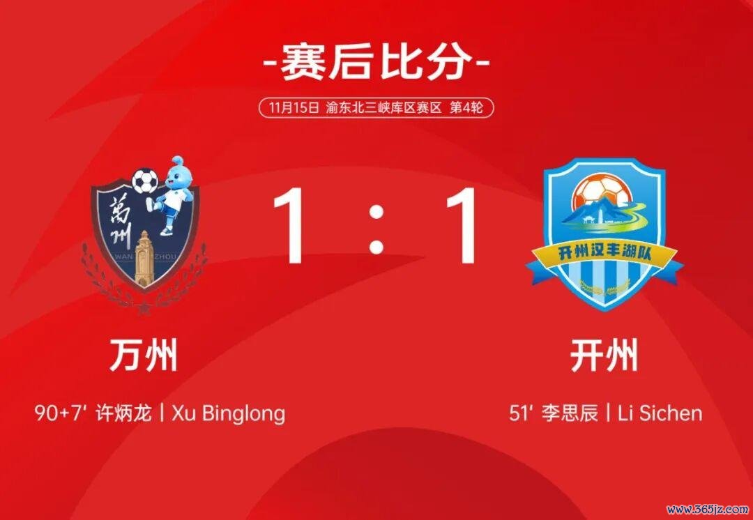 最终,两边1:1抓手言和。4轮比赛后,丰皆4战全胜,积12分领跑,开州和万州各取1分,现在以8分分列赛区第2和第3名。