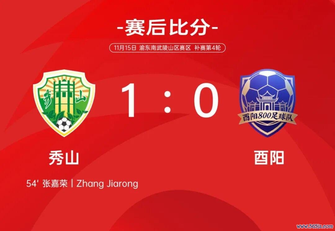 上半场两边0:0互交白卷,下半场第54分钟,秀山右路传中,酉阳后点督察时出现漏情面况,秀山30号球员张嘉荣头球简略破门,最终秀山主场1:0顺利。4轮比赛后,秀山4战全胜,积12分排行渝东南武陵山区赛区第一,第二名和第三名的武隆和石柱辞别积7分和6分,在小组赛仅剩1轮的情况下,秀山提前锁定8强限额,成为41支参赛戎行中第一支晋级的球队。